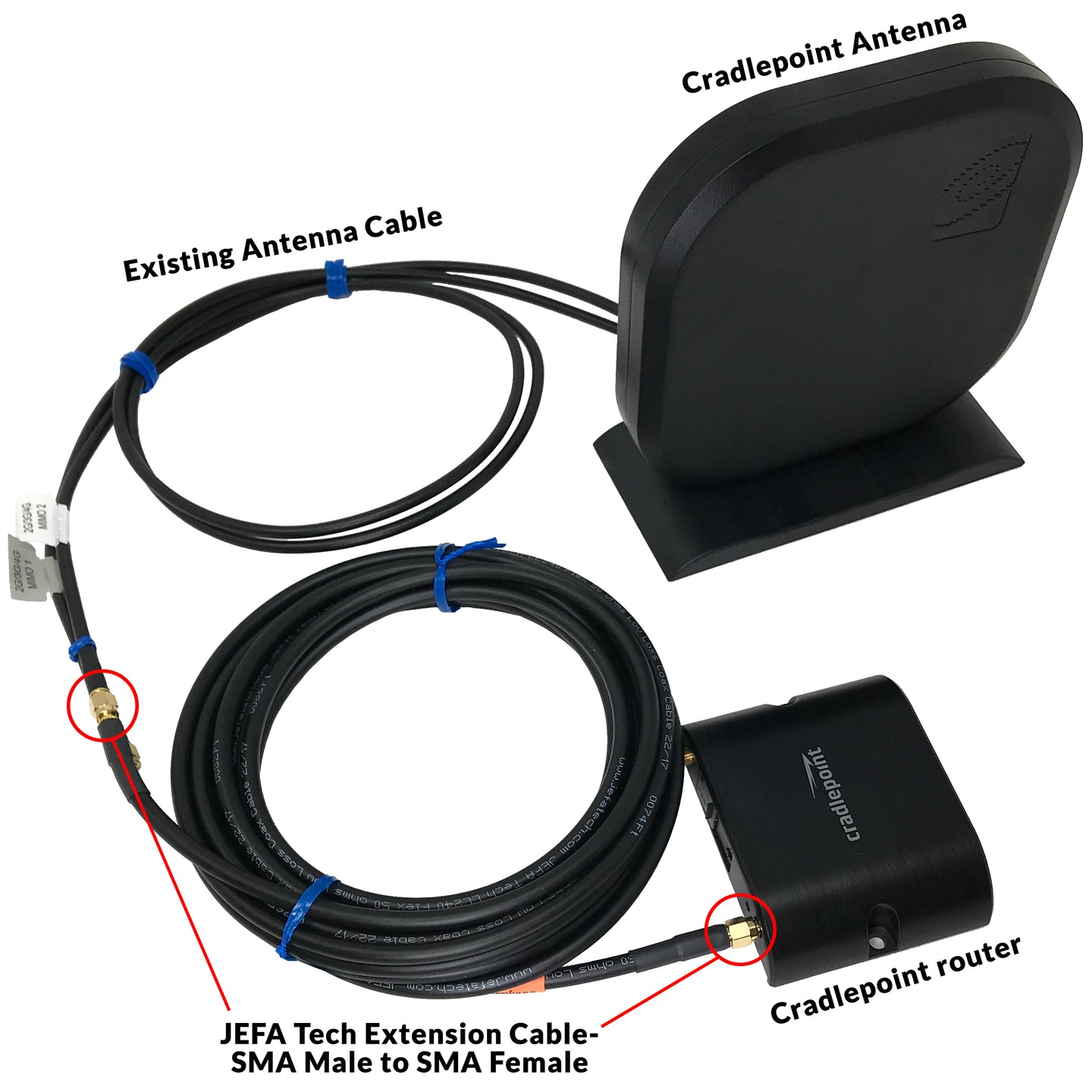 This cable assembly is configured as SMA Male on one end and SMA Female on the other. It is compatible with all 4G and 5G antennas on the market that have an SMA connector. For connecting external antennas that have N Female connectors, use this cable assembly instead.
