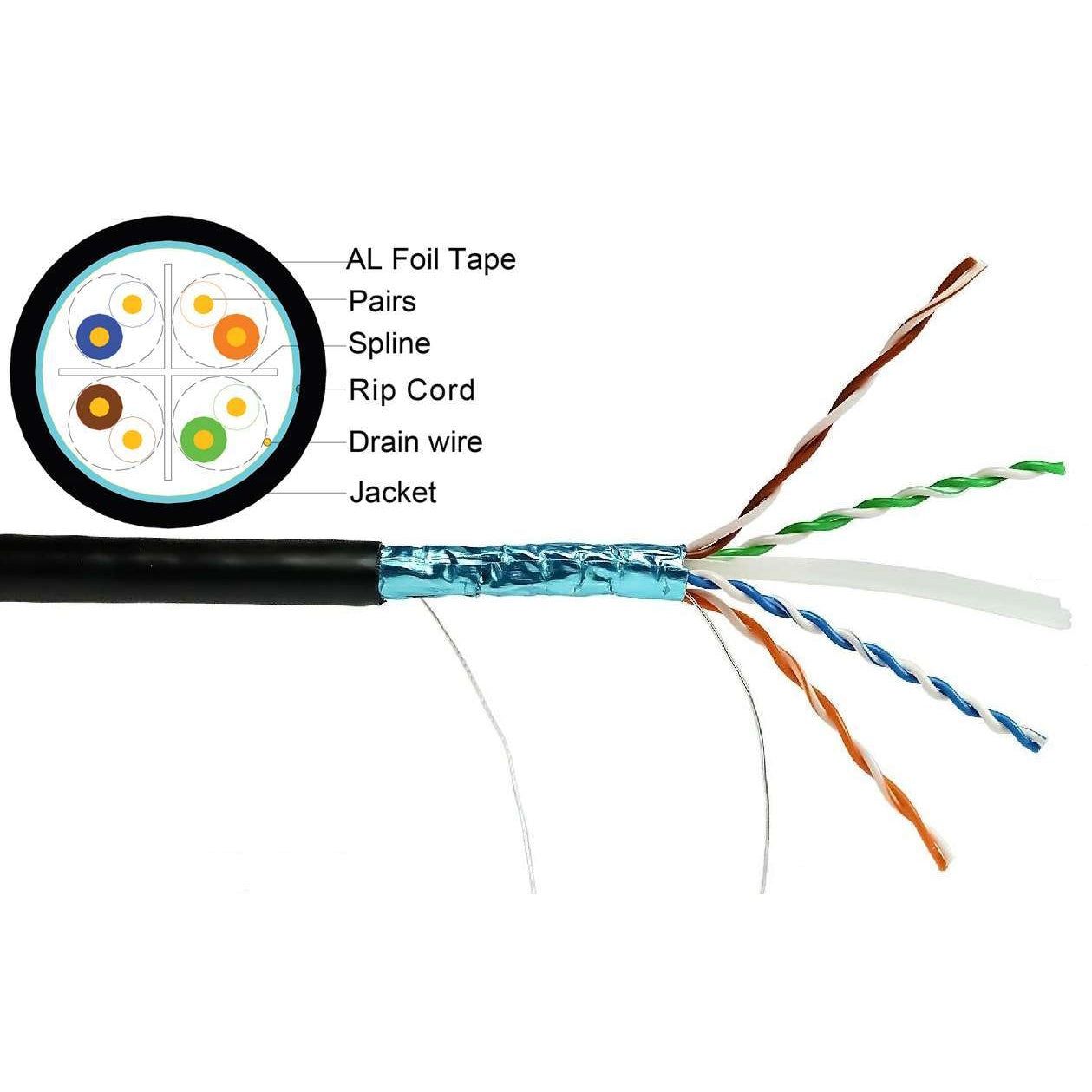 Outdoor Rated Shielded Cat6 - UV Resistant, Direct Burial, Ground Wire - By The Foot
